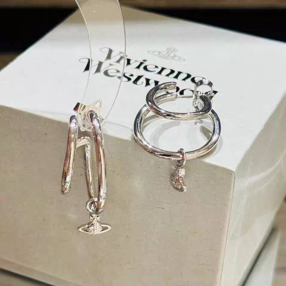 Boucles d'oreilles pendantes Vivienne Simple Line Small Saturn en alliage de zircon, luxe léger, style unique, punk, cercle, unisexe