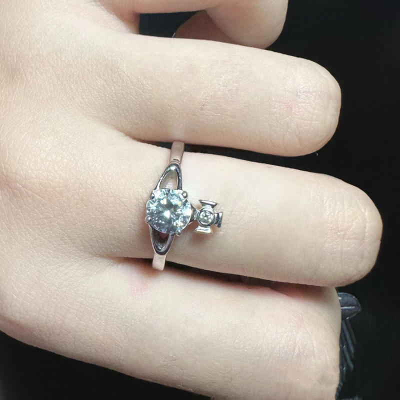 Bague Vivienne tendance simple à quatre griffes, petite planète, zircone cubique, alliage plaqué or, bijoux de luxe élégants pour le quotidien, pour femme