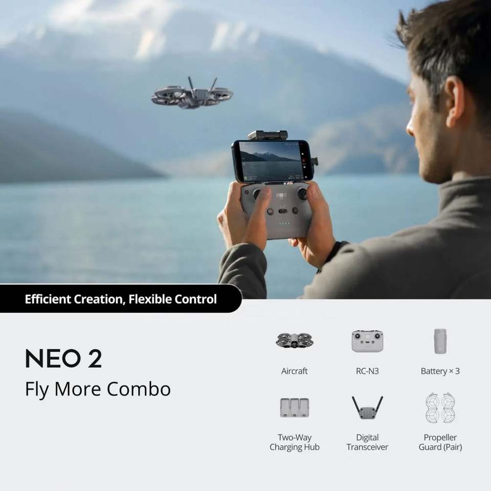 Vlog Neo 2 Fly More Combo, émetteur-récepteur numérique RC-N3, 3 batteries, hub de charge, protections d'hélices pour vidéo en direct