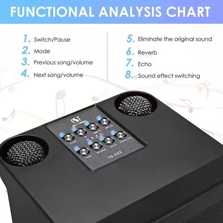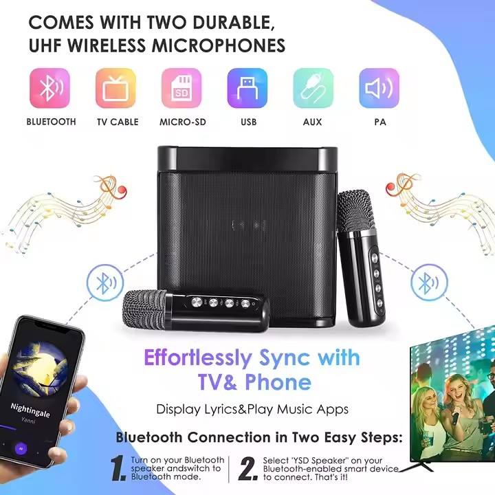 Vofull-Machine à chanter portable Blueteeth Speaker avec 2 microphones sans fil, système de karaoké complet prend en charge TF/USB