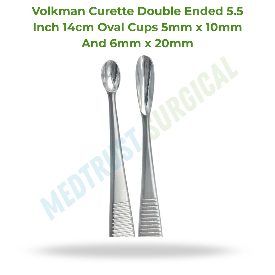 Curette de Volkman à double extrémité, 14 cm (5,5 pouces), cuvettes ovales