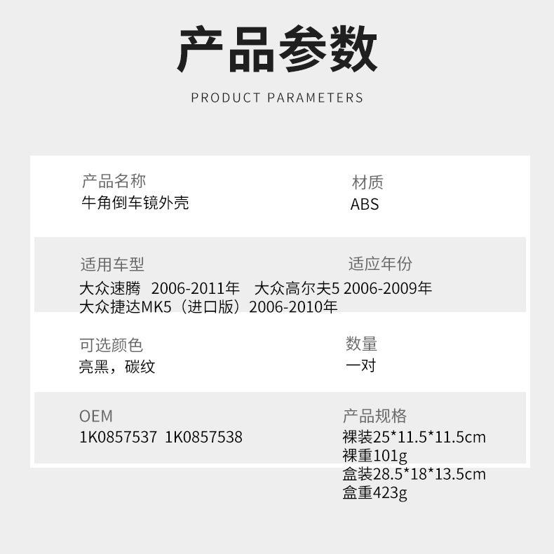 Coque de rétroviseur Volkswagen Bullhorn ABS 25x11.5x11.5cm pour Golf 5 Sagitar Jetta MK5 2006-2011