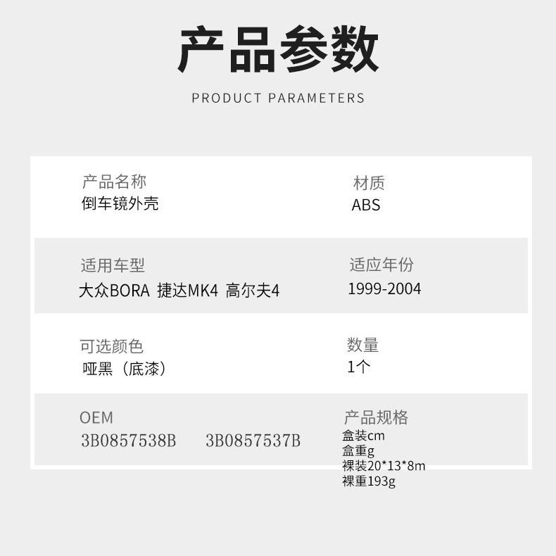 Boîtier de rétroviseur Volkswagen ABS noir gauche/droit 1999-2004 Golf 4 Bora MK4 Pièce de rechange
