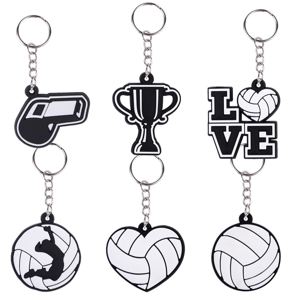 Ensemble de porte-clés en PVC sur le thème du volleyball Modèles assortis Trophée du sifflet Joueur de volleyball Silhouette Coeur Volleyball Fan de sport Cadeau