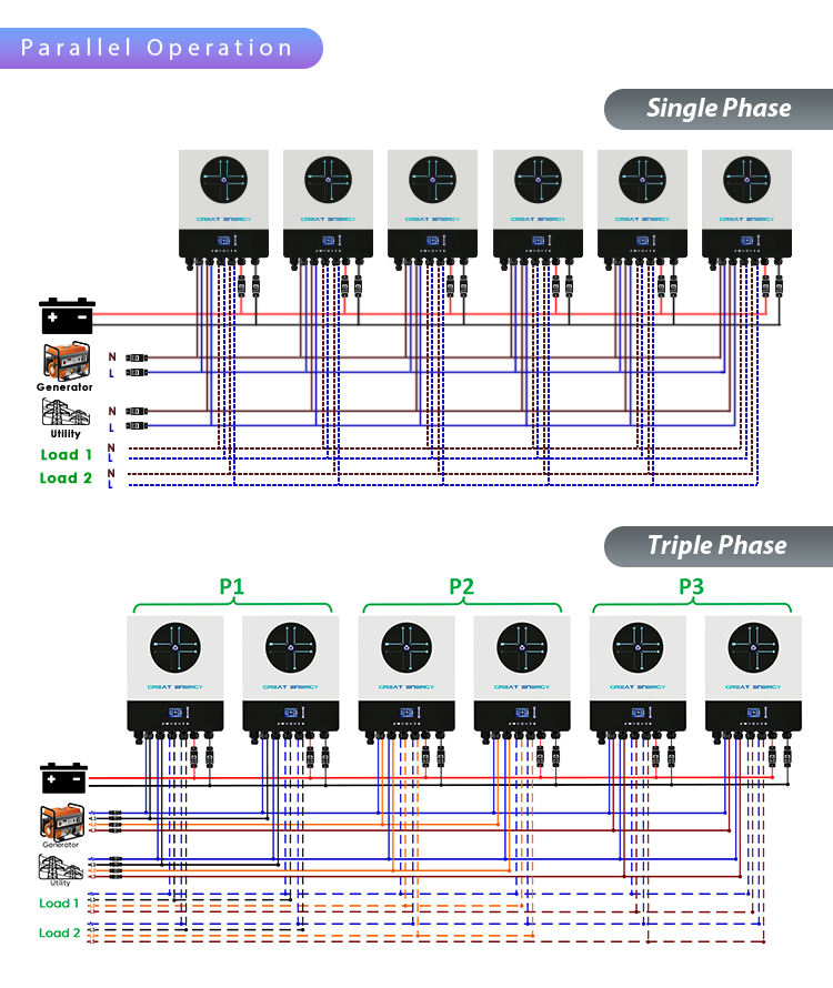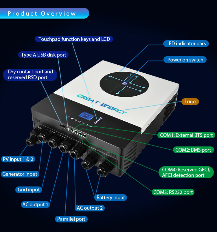 Chargeur d'onduleur de réseau Voltronic Axpert Ultra 11KW 8KW 150A 2 entrées 2 sorties intelligentes Sortie unique 48VDC Peut faire en parallèle
