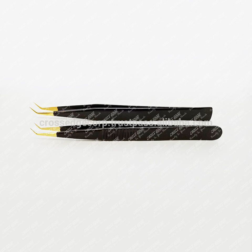 Stainless Steel Volume Lash Extension Tweezers in Black with Gold TipProduct name
