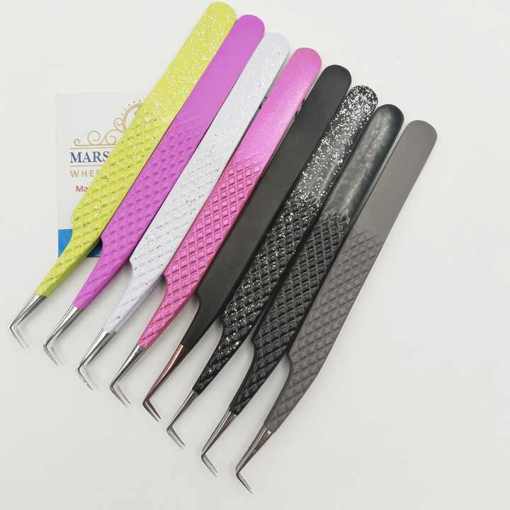 Pince à épiler en acier inoxydable antimagnétique pour extensions de cils Pince à épiler en fibre de verre Boot en forme de L Mega Volume Mink