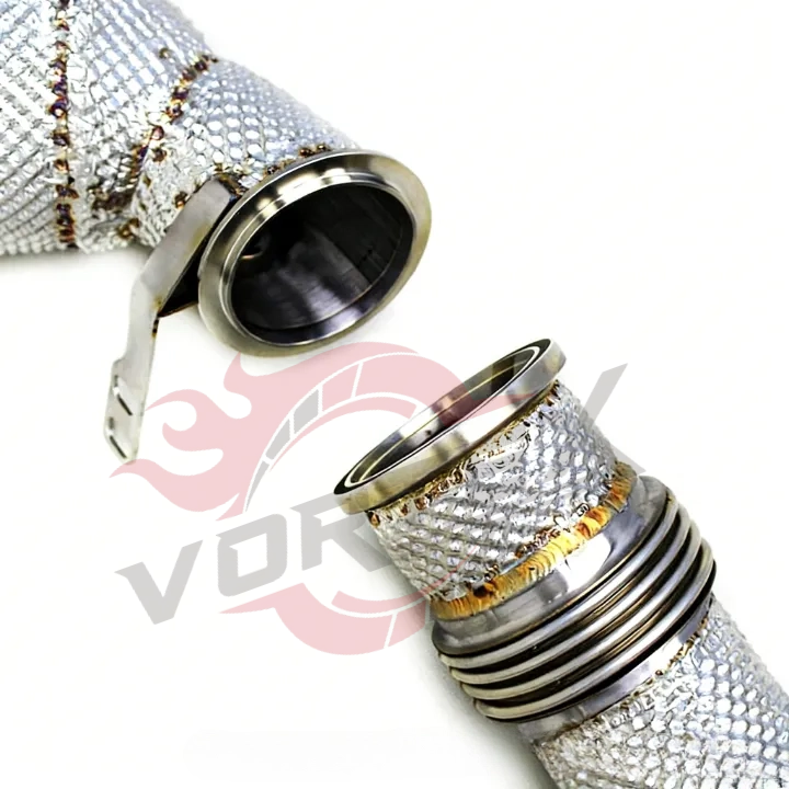 Vortex Factory Downpipe Turbo à Haut Débit pour M5 F90 4.4T 2018-2023 Sport avec Boucliers Thermiques d'Échappement en Acier Inoxydable