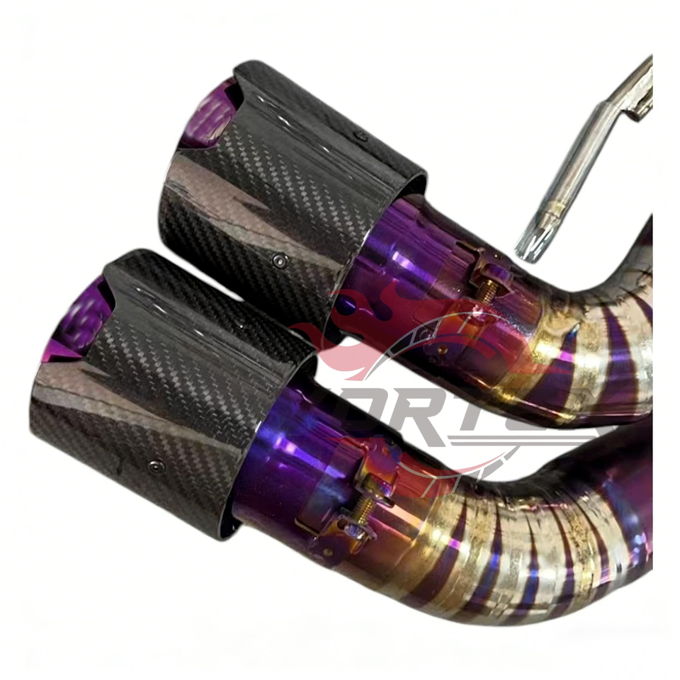 Échappement arrière Vortex Purple Titanium pour BMW G20 G22 M340i M440i 3.0T 2021-2025 Système Valvetronic Kit de sorties d'échappement quadruples en fibre de carbone