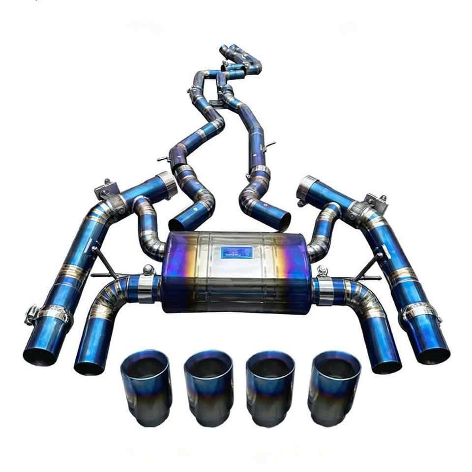 Système d'échappement Vortex Racing Titanium compatible avec M2 Competition F87 S55 3.0T Valvetronic Catback, silencieux à découpe en forme de pie, finition bleu brûlé.