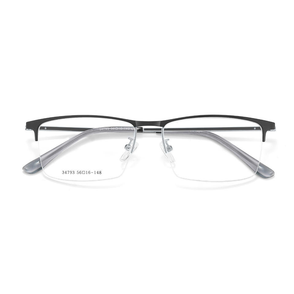 Voss Montures de lunettes demi-cerclées pour hommes 34793, verres en résine de taille moyenne, monture en alliage, design quadrilatéral linéaire