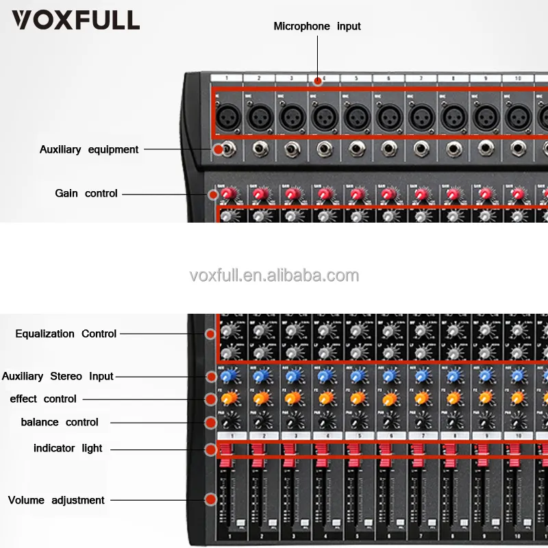 Console de mixage audio numérique professionnelle Voxfull CT16 16 canaux avec alimentation fantôme 48V