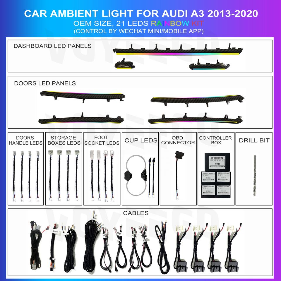Éclairage d'Ambiance Voyeego pour Voitures, Prix Usine, Bonne Qualité, Vente Chaude pour Audi A3 2013-2020