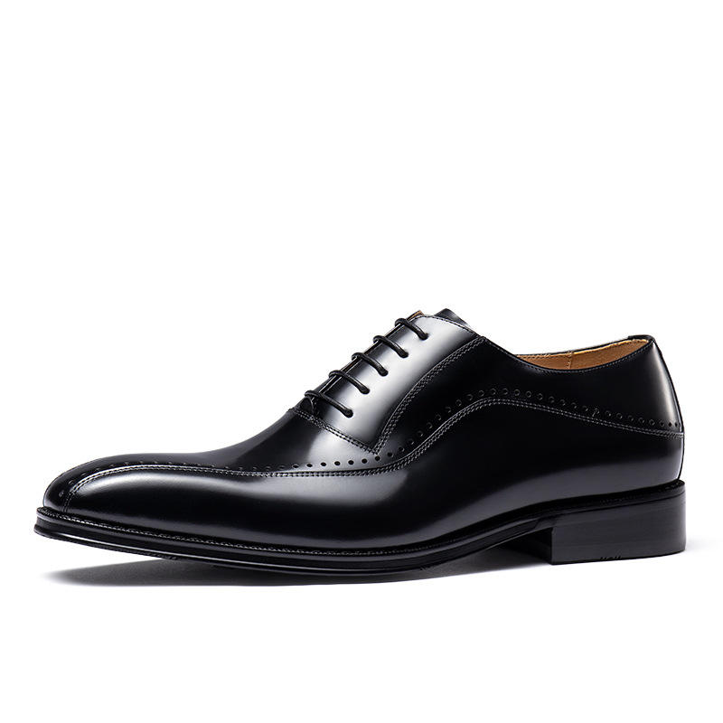 Chaussures de bureau et de carrière pour hommes en cuir de vache véritable à bout pointu, avec soutien de la voûte plantaire, empeigne en maille respirante et fermeture à enfiler