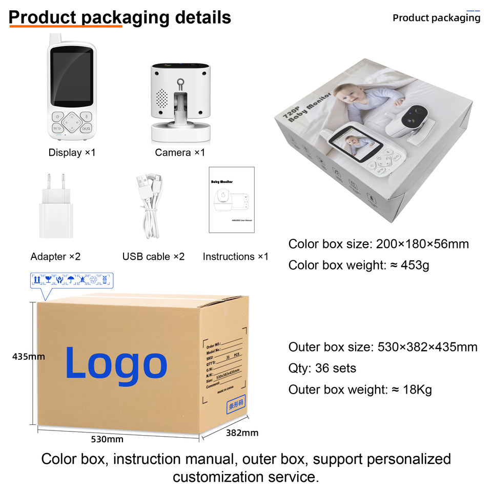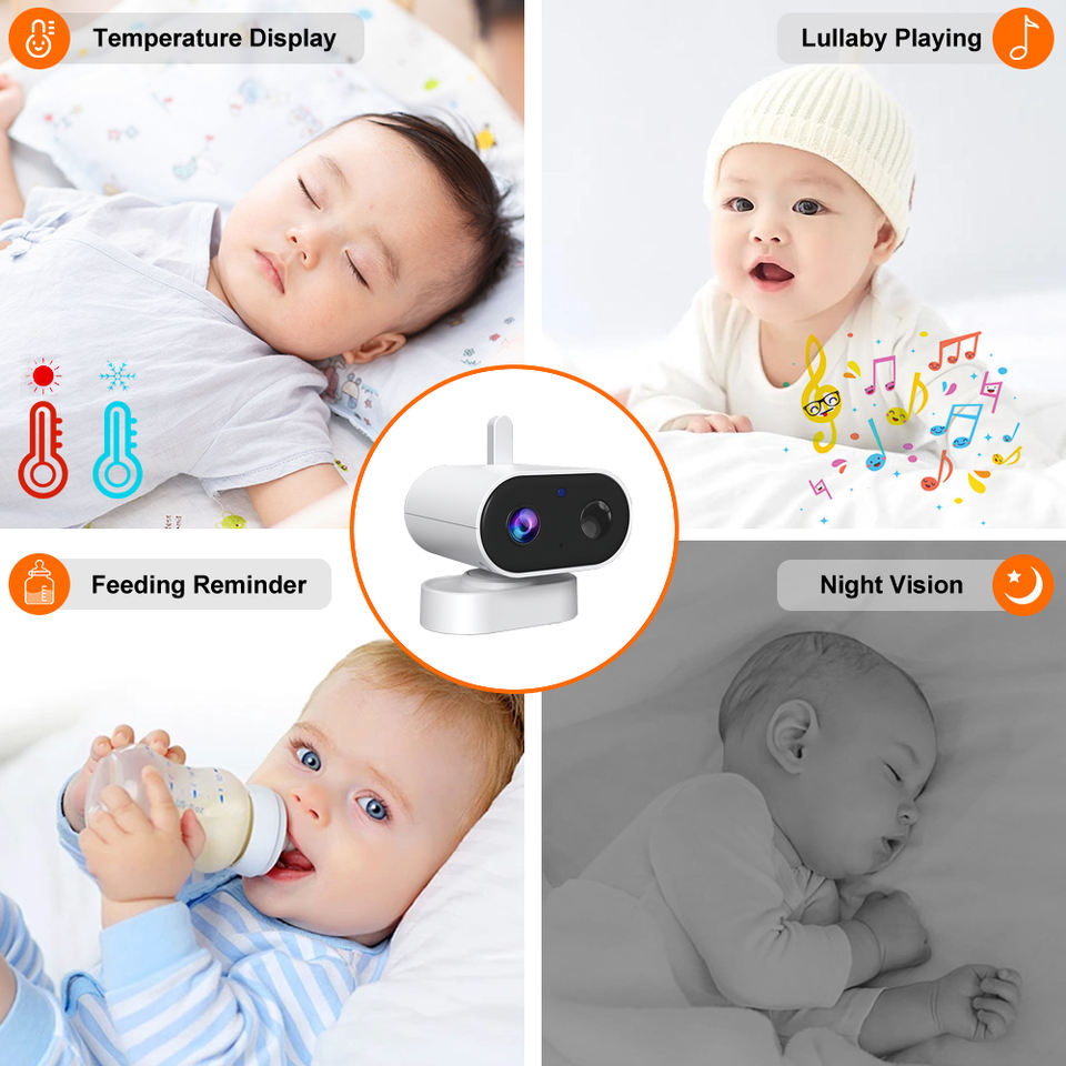 Lecteur de musique, Vision nocturne, Audio bidirectionnel, Détection sonore, Temperature detection, Cry warning, feeding alarm, privacy protection, 2.4G wireless transmission, wide view angle
