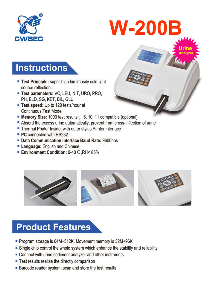 W-200B Instruments d'analyse clinique manuelle Analyseur de sédiments d'urine d'hôpital Construction en métal Prix compétitif