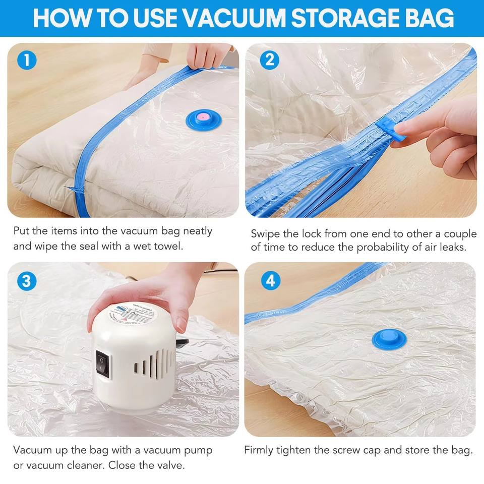 Sac de rangement sous vide personnalisé pour vêtements, design minimaliste avec pompe à air, sans danger pour les aliments, gain de place, applicable à toute pièce