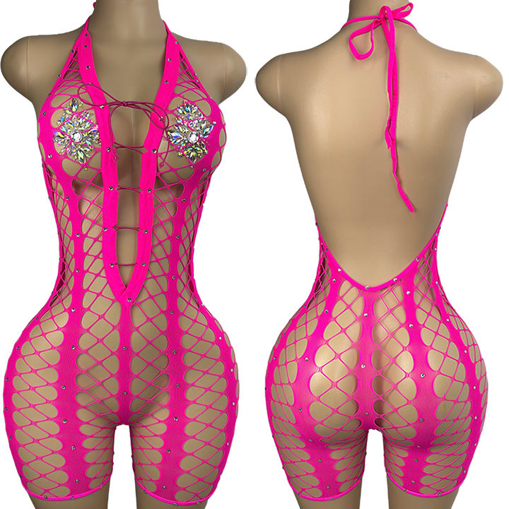 W.E.Handmade Résille Bas du dos licou Performance Wear Stripper Outfit Exotic Dancewear