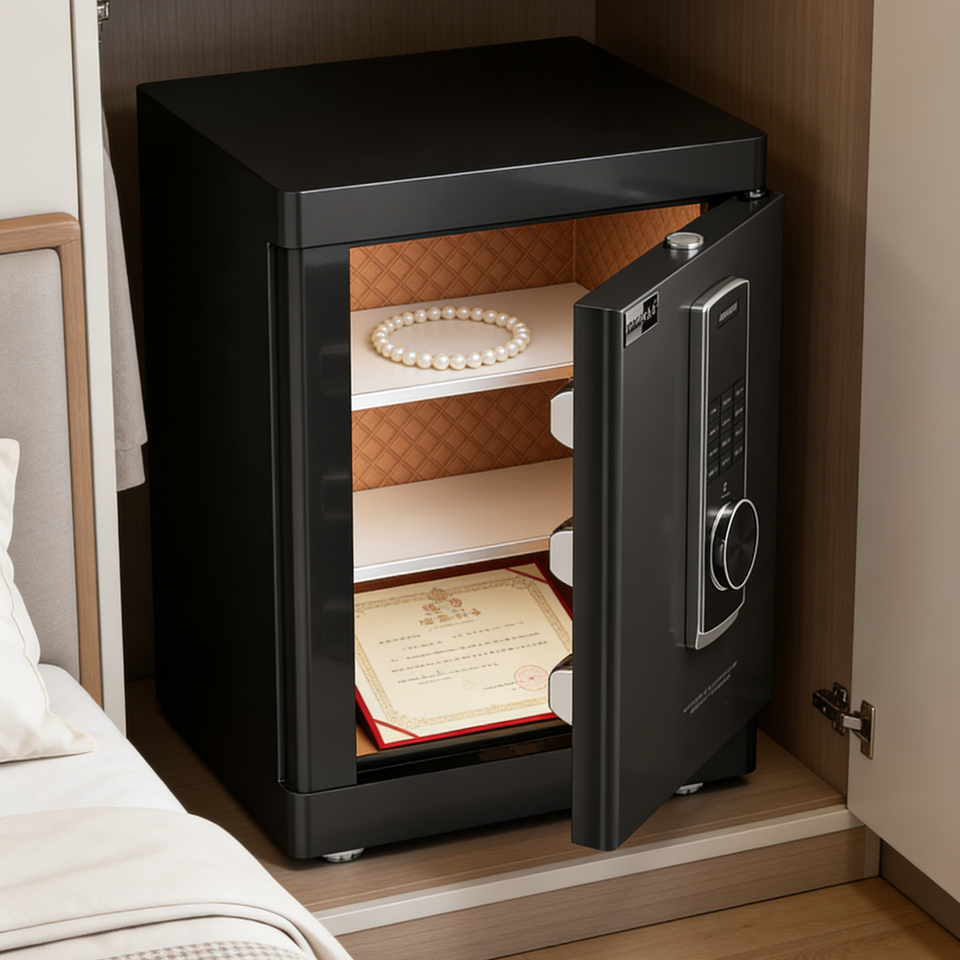 Coffre-fort W1-45 en acier avec serrure électronique à empreinte digitale et code, avec clé, taille moyenne, pour la maison, l'hôpital, l'école, la chambre, l'hôtel, la banque