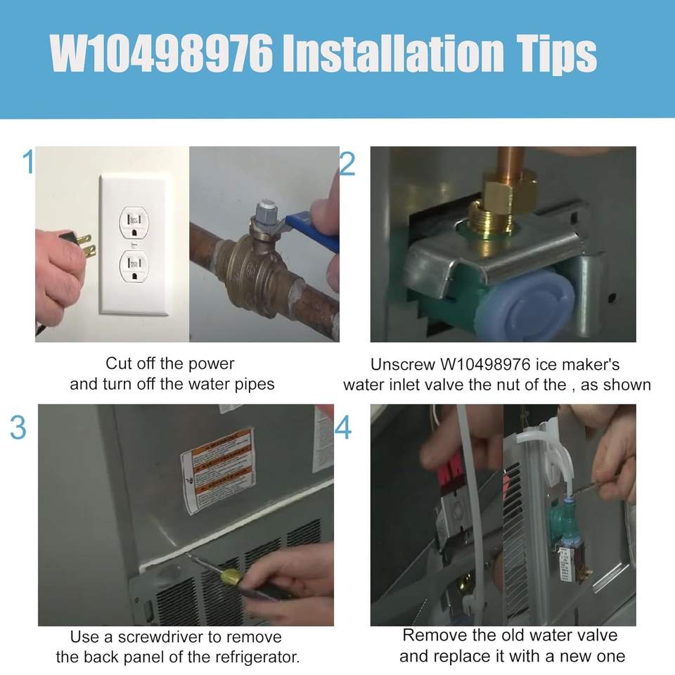 W10498976 Refrigerator Ice Maker Water Inlet Valve for Whirlpool Fridge Replaces W10420082 PS11755667 K-78200 W10498974 K-78186
