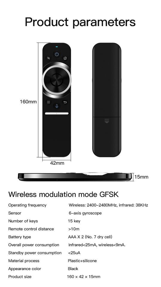 W1S Mini 2.4G Air Mouse Remote Universal TV Remote Control Voice Caractéristiques Nvidia Shield/Android Compatible RF Wireless Home Use