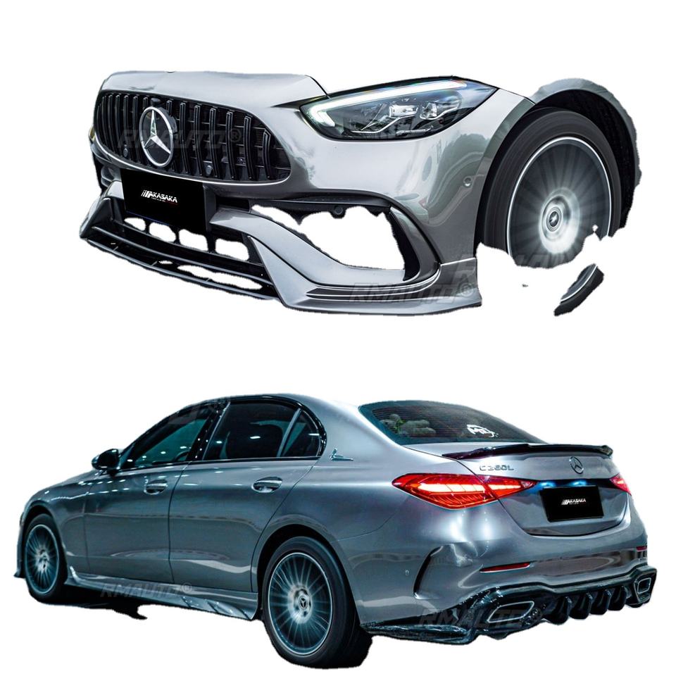 Kit carrosserie W206 : Lame de pare-chocs avant, Cache de séparateur, Jupes latérales, Calandre sport, Aileron arrière pour Mercedes Benz Classe C W206 2022-2023
