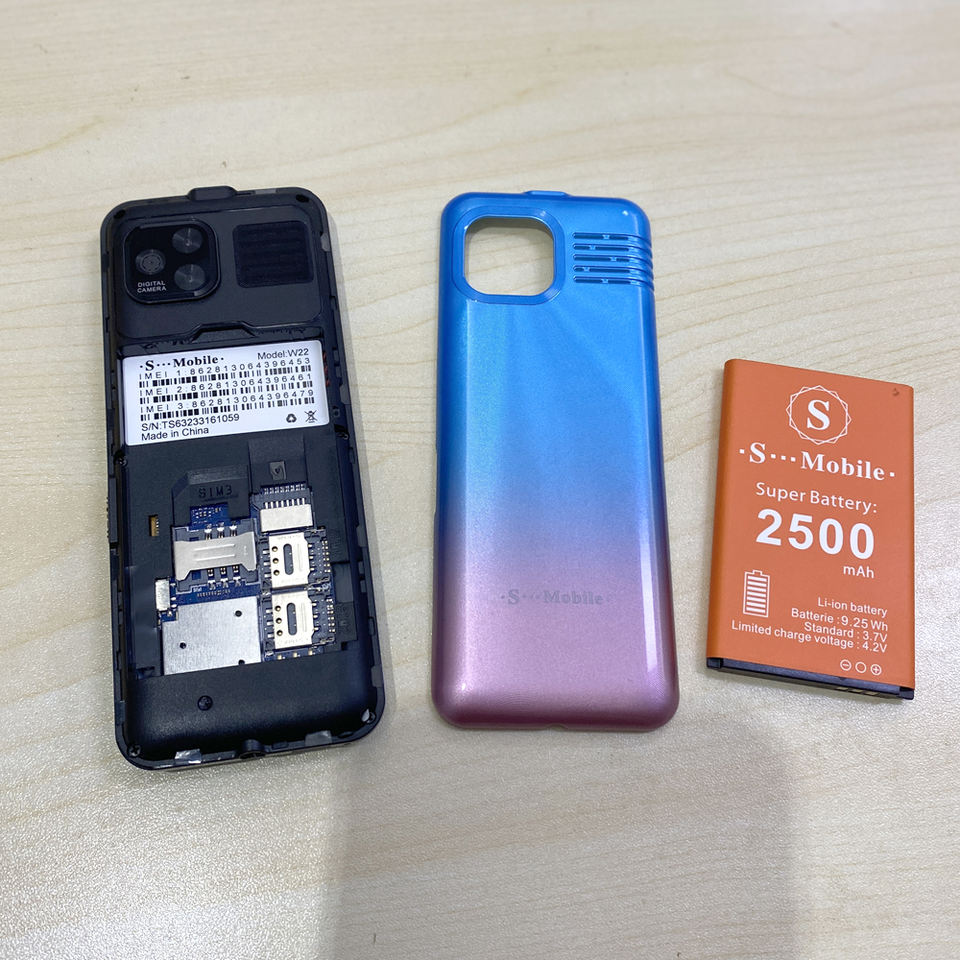 Nouveau téléphone portable W22 avec grande batterie, lampe torche, 3 cartes SIM, écran LCD 2,2 pouces, radio FM, prise en charge multilingue