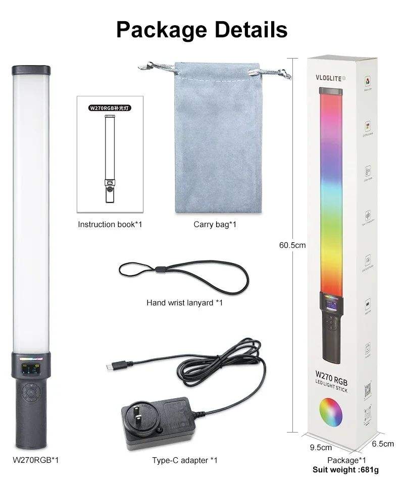 Bâton lumineux vidéo LED portable W270RGB rechargeable magnétique RVB coloré avec déflecteur pour TikTok YouTube Studio photo