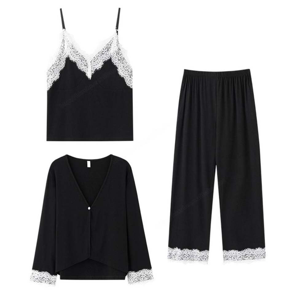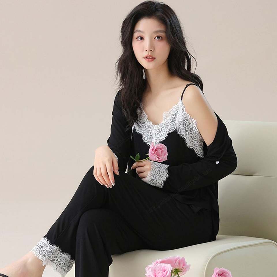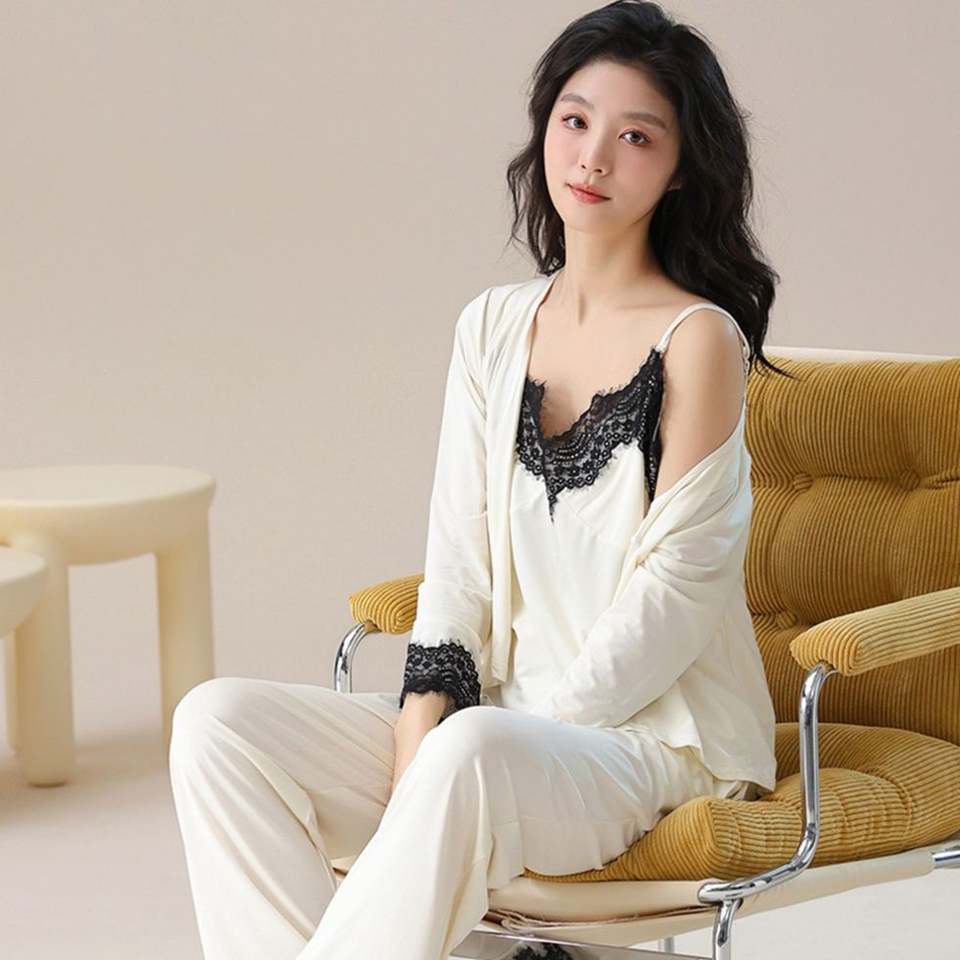 Femmes automne nouveau Style trois pièces respirant haute qualité vêtements de nuit XL Modal pyjamas à manches longues taille élastique solide tricoté