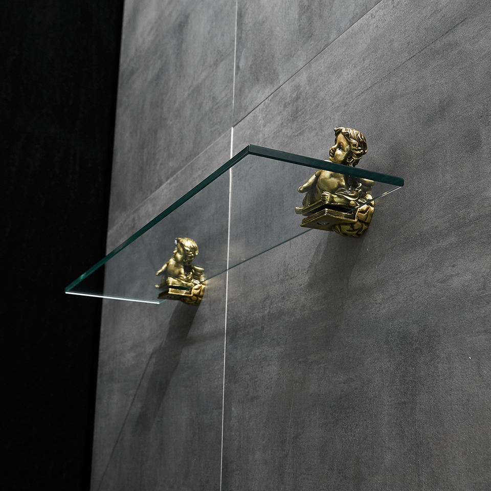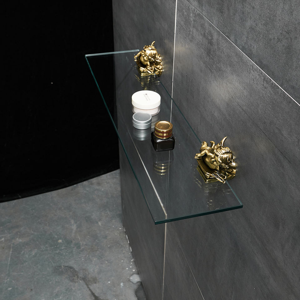 WANFAN MB-0783B Conception D'angle de salle de Bains De Bâti De Mur En Métal Étagère En Verre