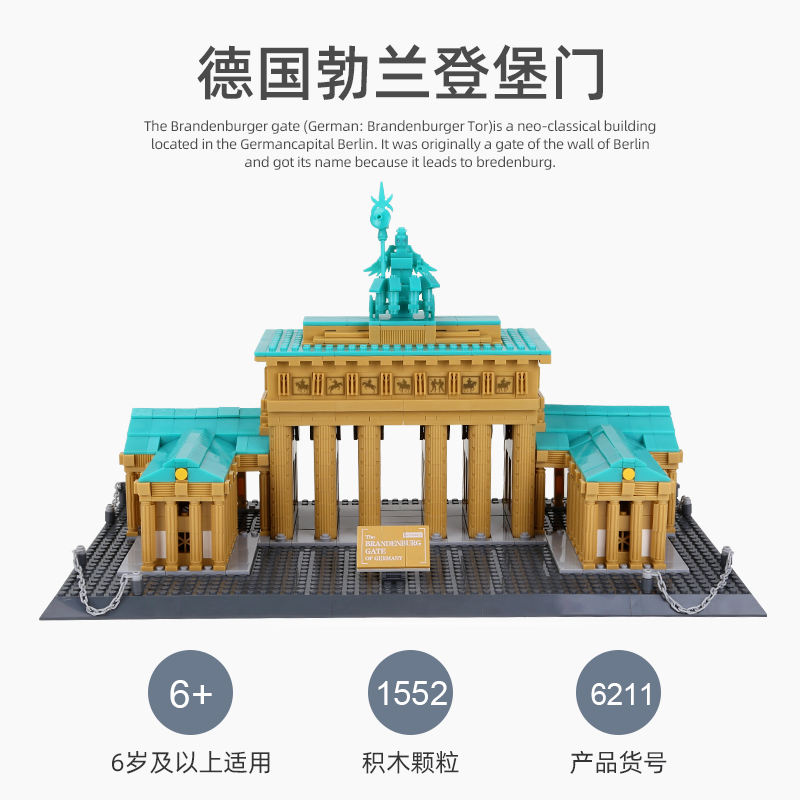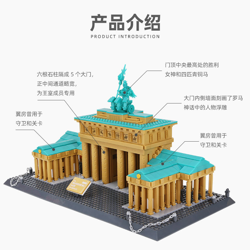 Bloc de construction WANGE 6211 la porte de brandeburg de BERLIN, bricolage, assemblage de briques, jouet Lepining éducatif pour enfants