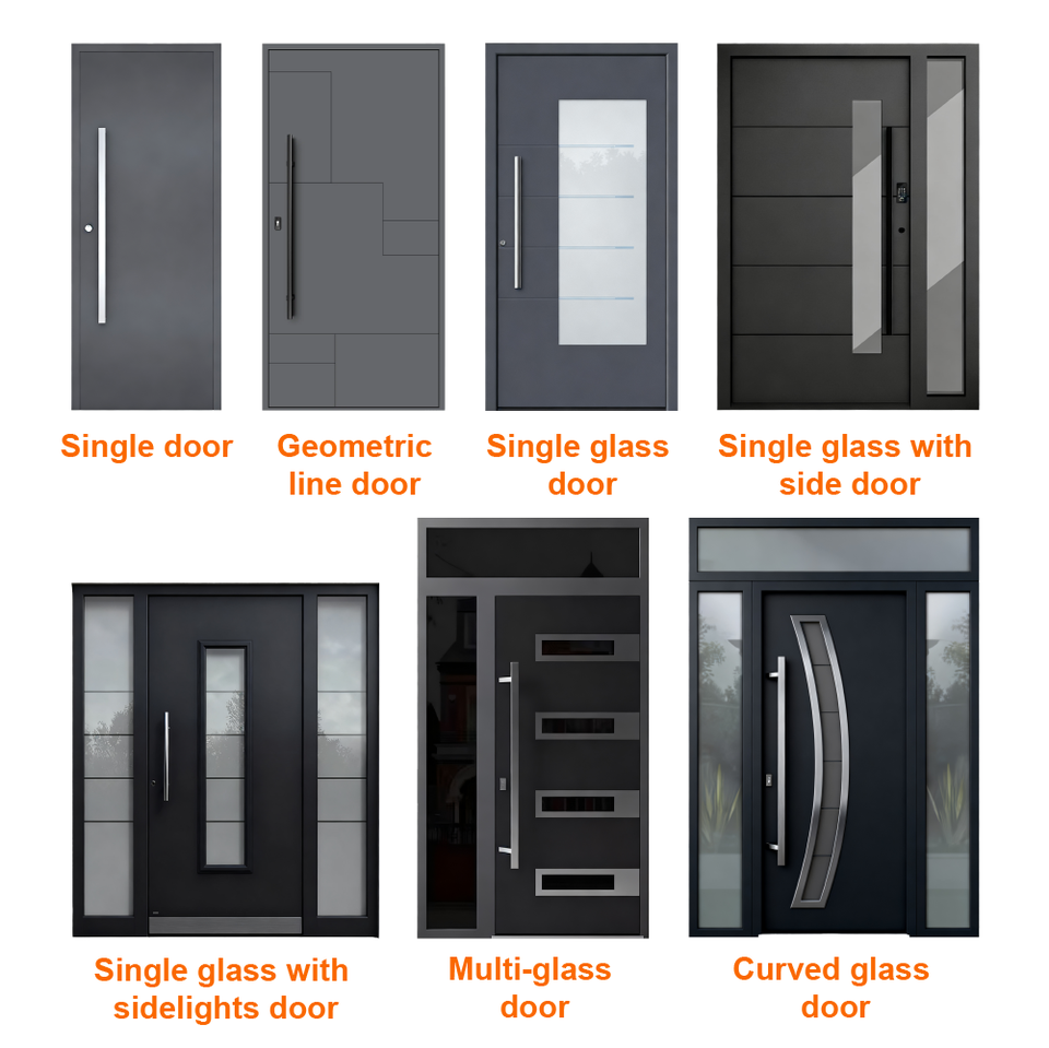 Portes d'entrée principales sur mesure au prix d'usine WANJIA, portes d'entrée extérieures, portes pivotantes pour maison