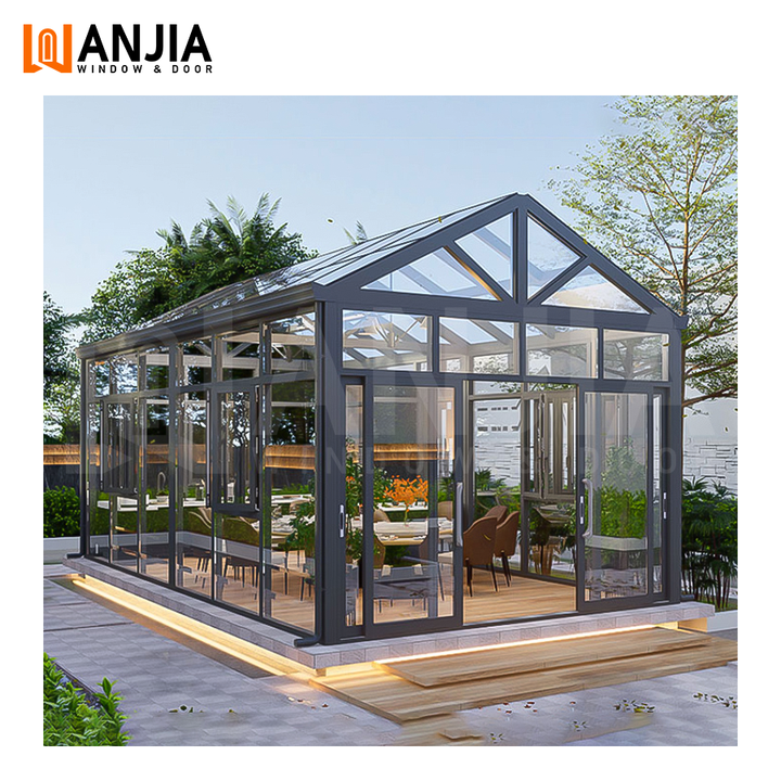 WANJIA Design moderne Cadre en aluminium rétractable Solarium Sunroom Vente à chaud Verre à bris thermique Salon de soleil pour l'extérieur des villas