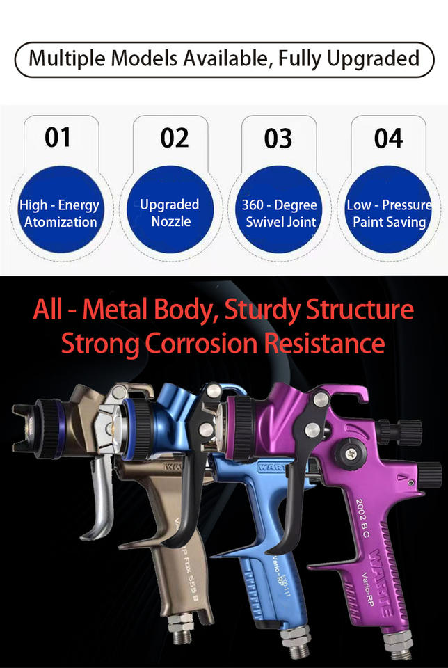 Pistolet à peinture HVLP professionnel WARTE modèle 555 avec buse de 1,3 mm et réservoir d'alimentation par gravité de 600 ml, garantie de 3 ans pour la peinture automobile
