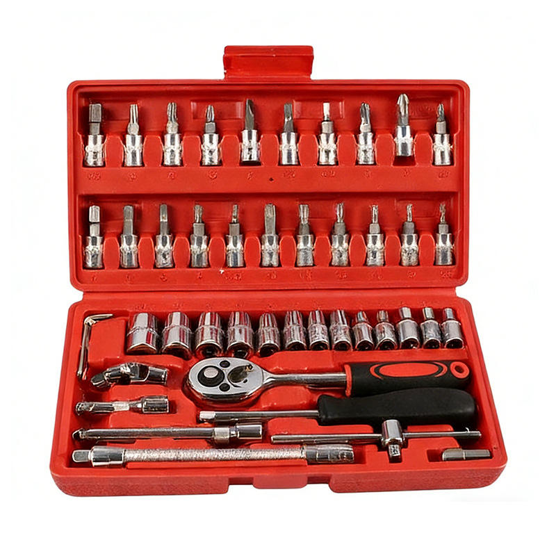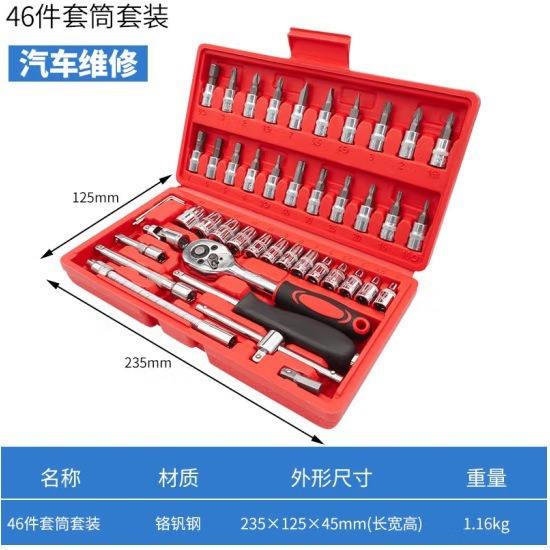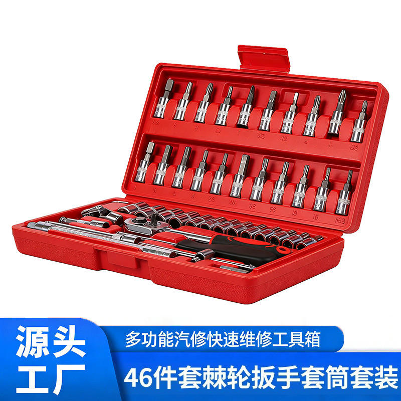 Jeu de clés à cliquet WASH de 46 pièces, douilles de 1/4 po, boîte à outils pour réparation automobile, boîte à outils en acier au chrome-vanadium