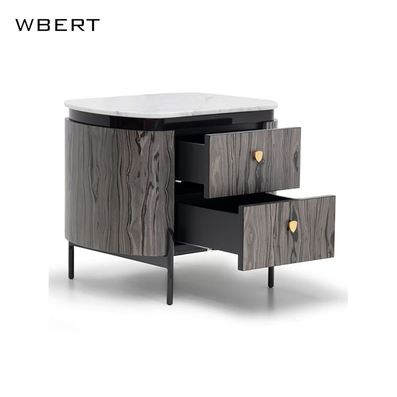 WBERT Tiroir italien de luxe moderne au design simple en acier inoxydable Mobilier de chambre à coucher d'appartement d'hôtel Table de chevet en bois massif et marbre