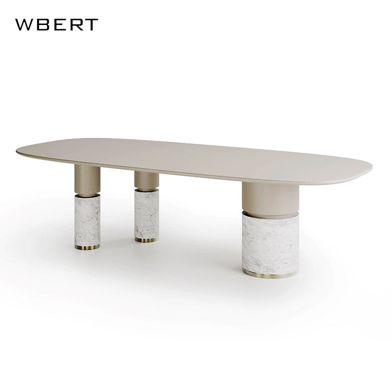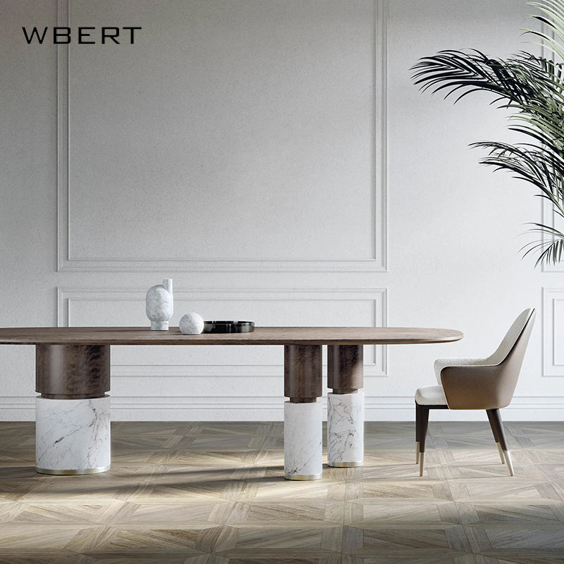 WBERT Italian Marble Round Table Household Dining Table Marble Solid Wood Dining Table Restaurant Large Oval Household Dining Ta