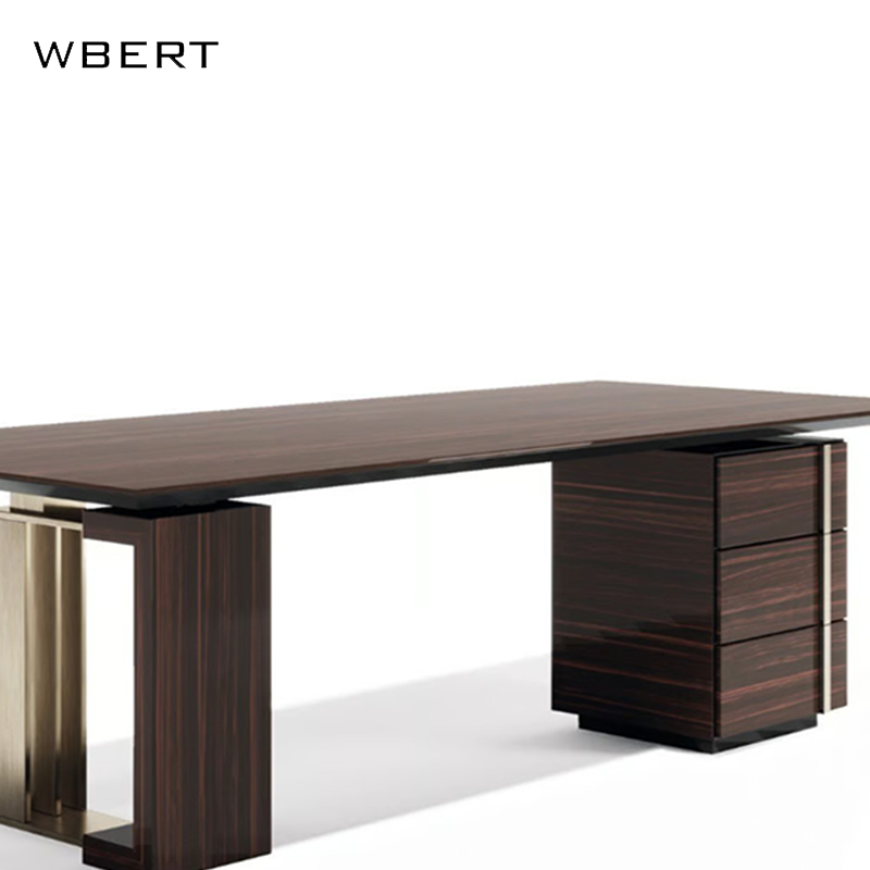 WBERT Table de conférence italienne minimaliste et moderne Établi simple en bois massif noir Grande table longue avec bûche noire