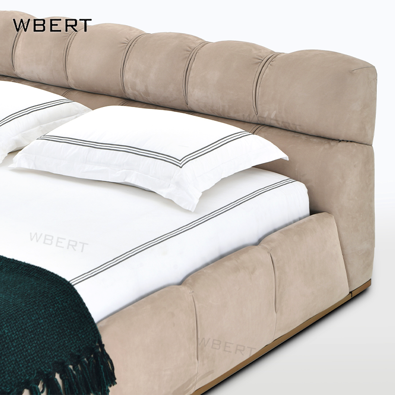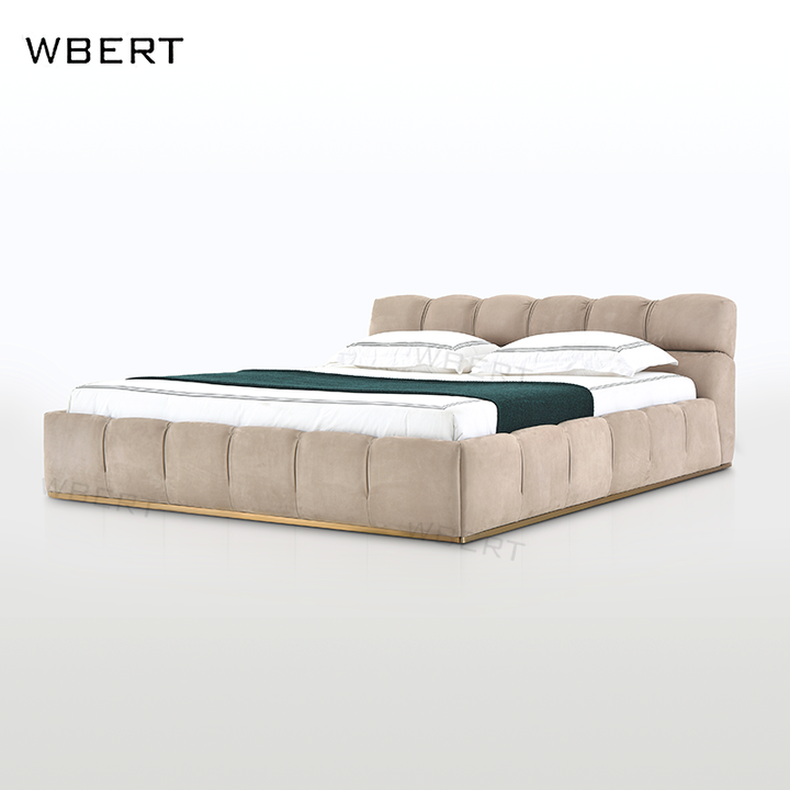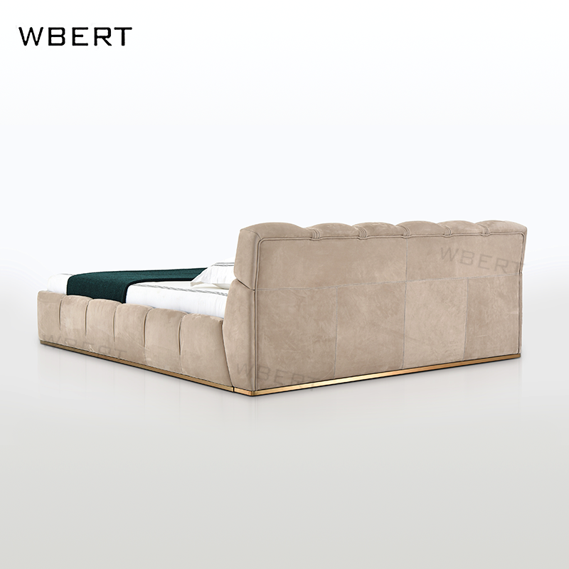 WBERT Lit moderne en cuir véritable mat brun caramel rembourré de style italien Lits de luxe en bois massif avec pieds en bois massif
