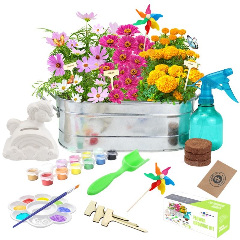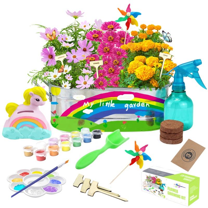Kit de jardinage pour enfants WD avec peinture et outils de plantation, acier galvanisé durable, design moderne, cadeau scientifique pour les jeunes jardinières