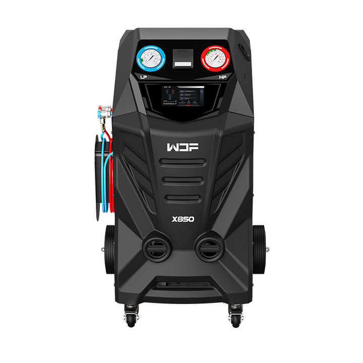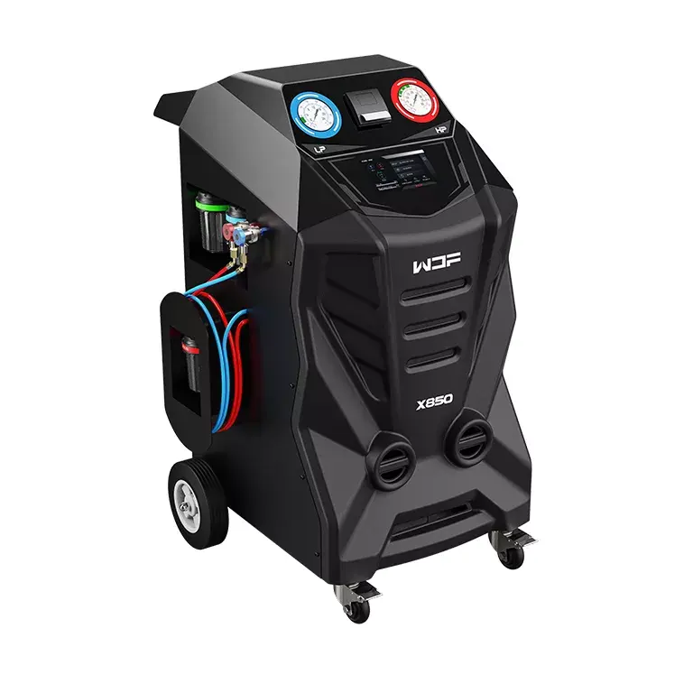 Machine de remplissage de réfrigérant entièrement automatique WDF X850 compatible avec les climatiseurs de voitures et de bus, compatible avec les tensions AC 110V/120V/220-240V