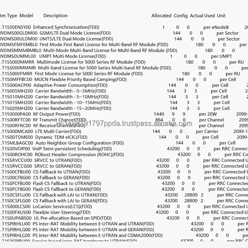 Licence ENodeB en mode normal WDMS0UFMLF00 UBBP pour utilisateurs connectés en RRC, garantie 1 an, MOQ 50