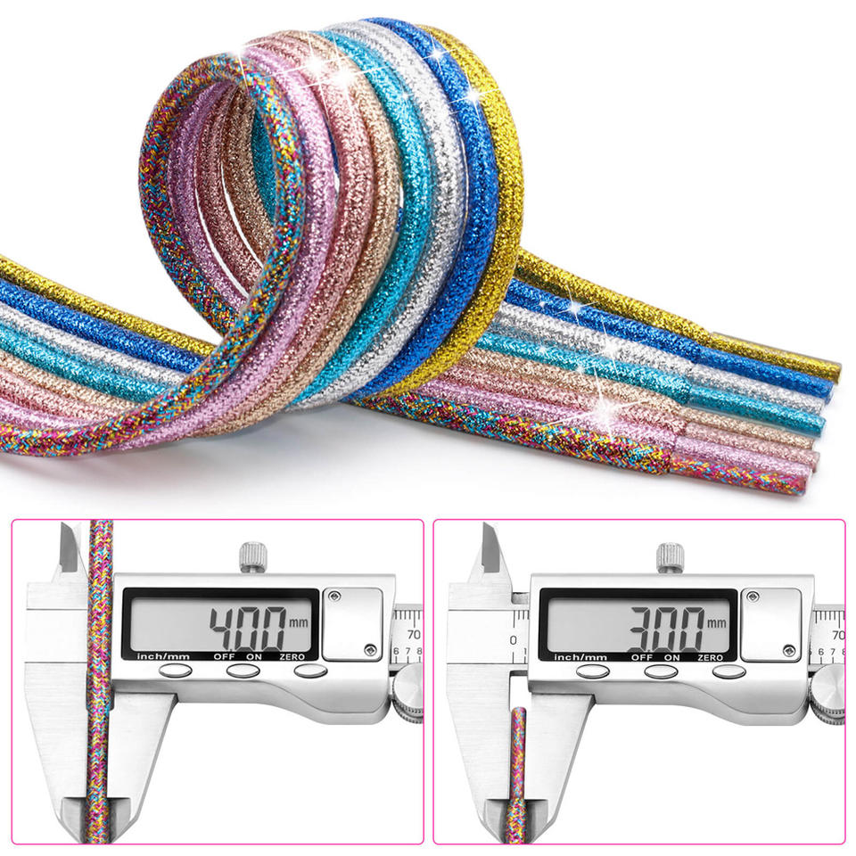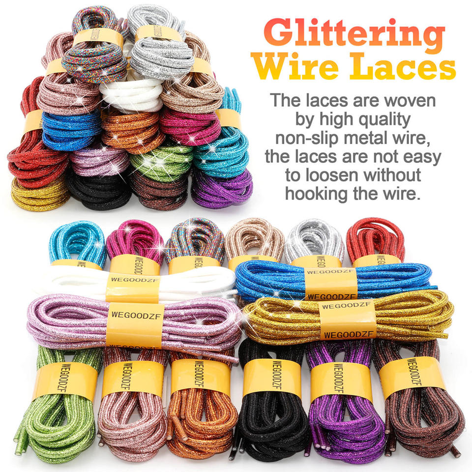 WEGOODZF Lacets Personnalisés en Polyester à Paillettes Épaisses de 4,5 mm, Scintillants Métalliques Dorés et Argentés pour Chaussures en Toile et Baskets