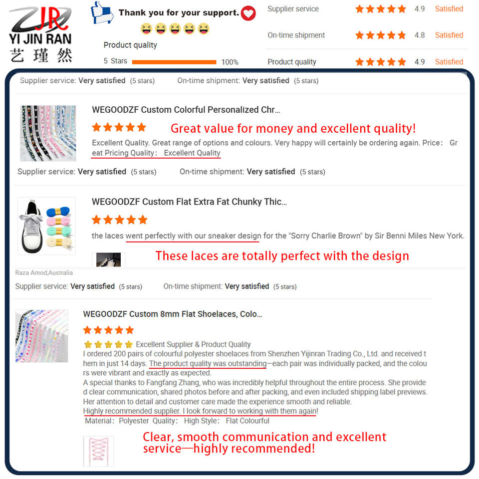 MOQ de lacets:50 paires (vous pouvez acheter en mélangeant les couleurs et les tailles)