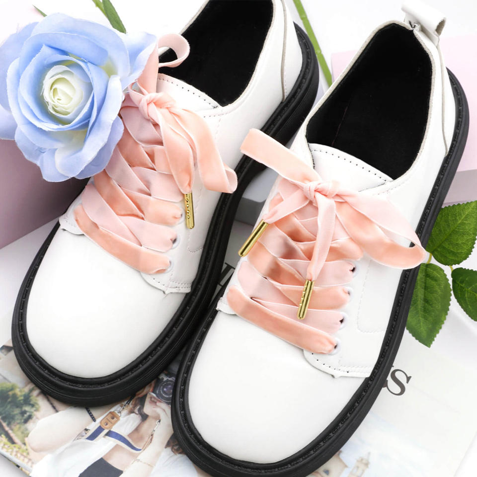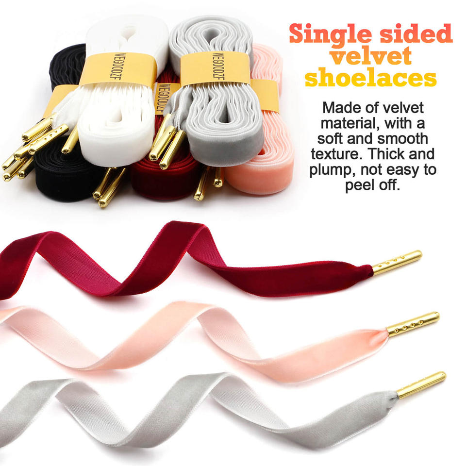 Lacets plats en velours polyester personnalisés WEGOODZF avec embouts métalliques dorés pour chaussures en tissu et chaussures décontractées