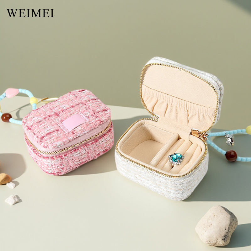 WEIMEI sac de rangement de bijoux portable personnalisé de couleur macaron bijoux organisateur de voyage boîte anneau collier boucle d'oreille avec chaîne perlée