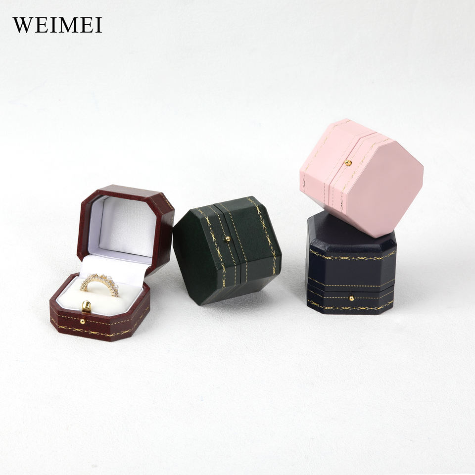 WEIMEI Boîte à bagues octogonale de haute qualité Boîte à bijoux personnalisée en feuille d'or avec logo Boîte à bijoux pour bagues
