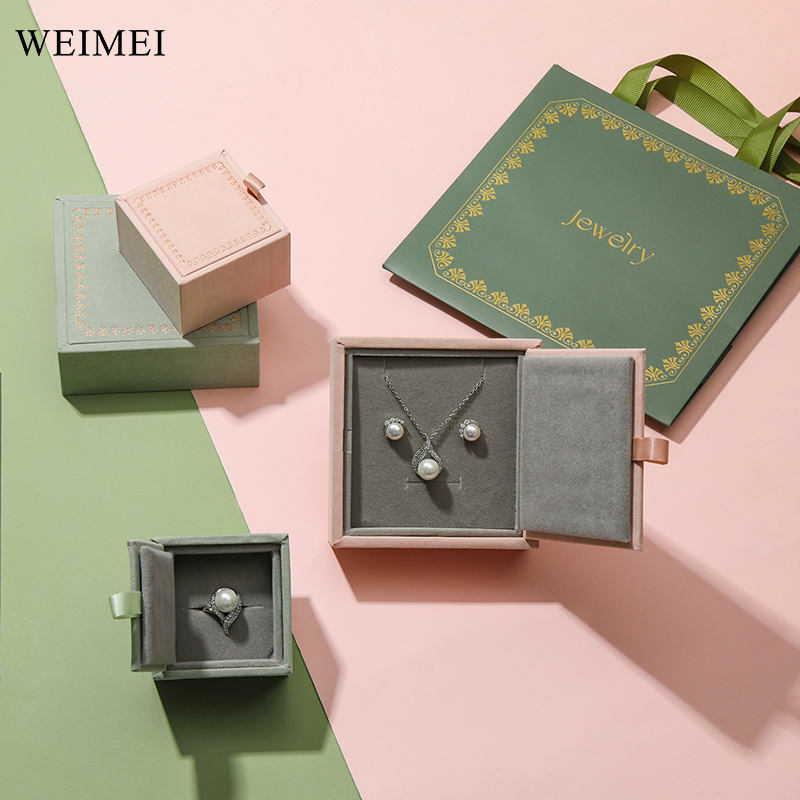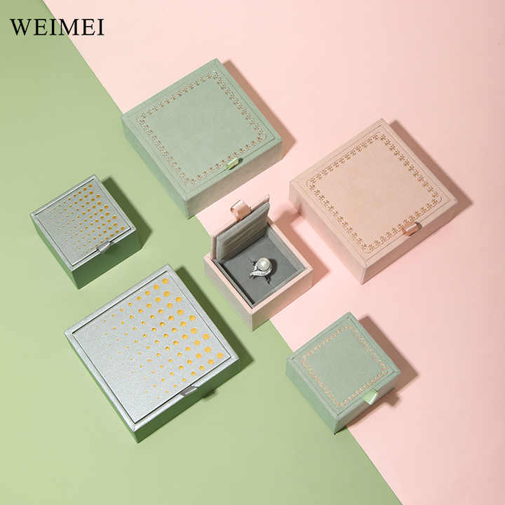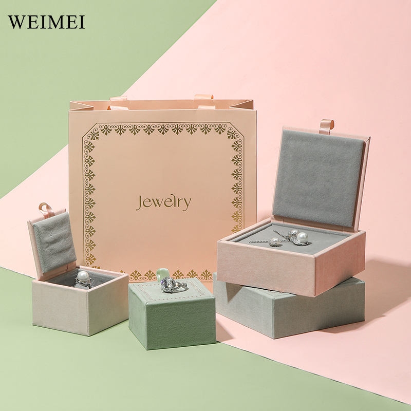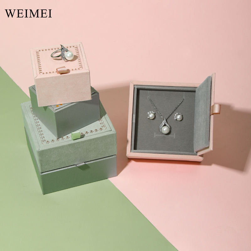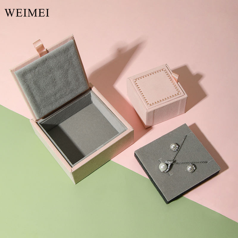 WEIMEI haut de gamme en bois texturé plat boîte-cadeau collier minimaliste boîte à bijoux velours doublé Beige emballage anneau boîte à bijoux