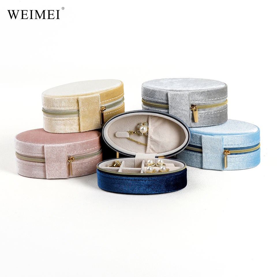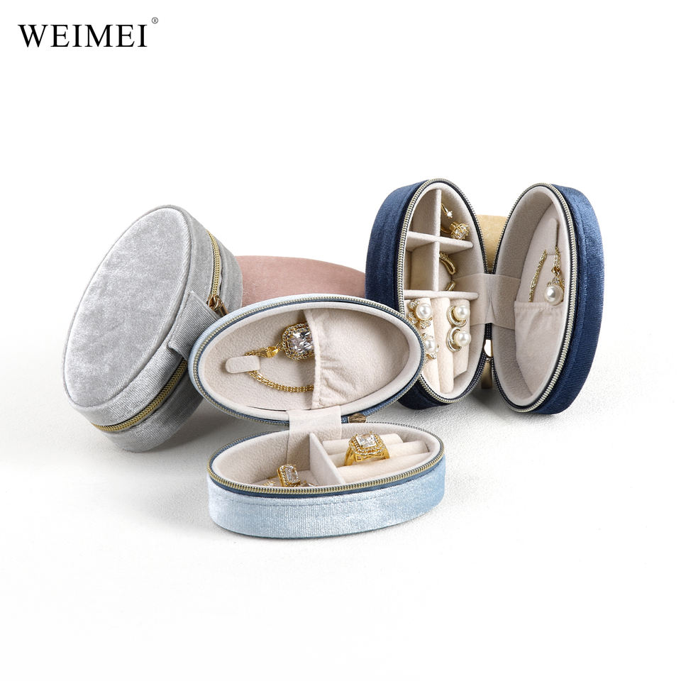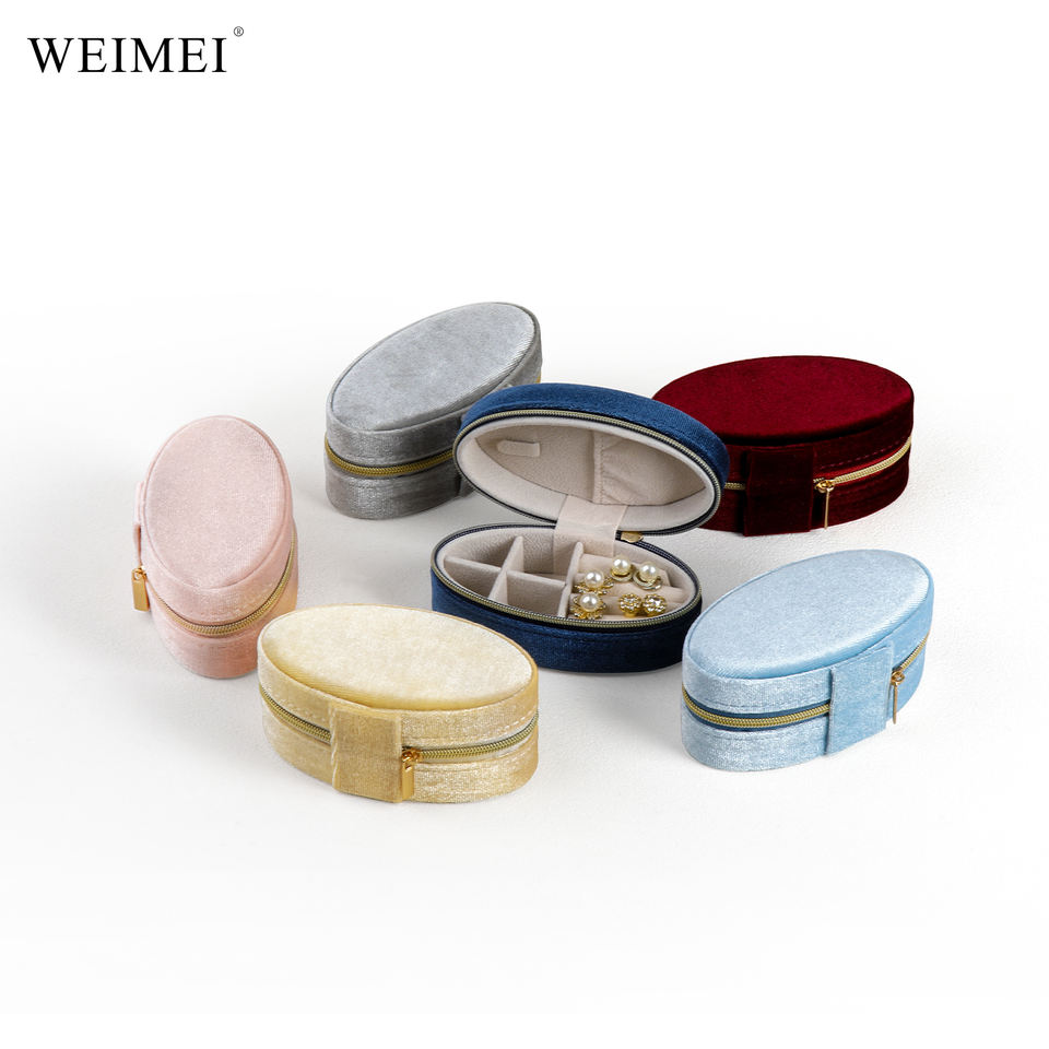 WEIMEI ovale velours boîte à bijoux Portable Logo personnalisé couleur boîte à bijoux pour boucles d'oreilles colliers voyage amical stockage de bijoux