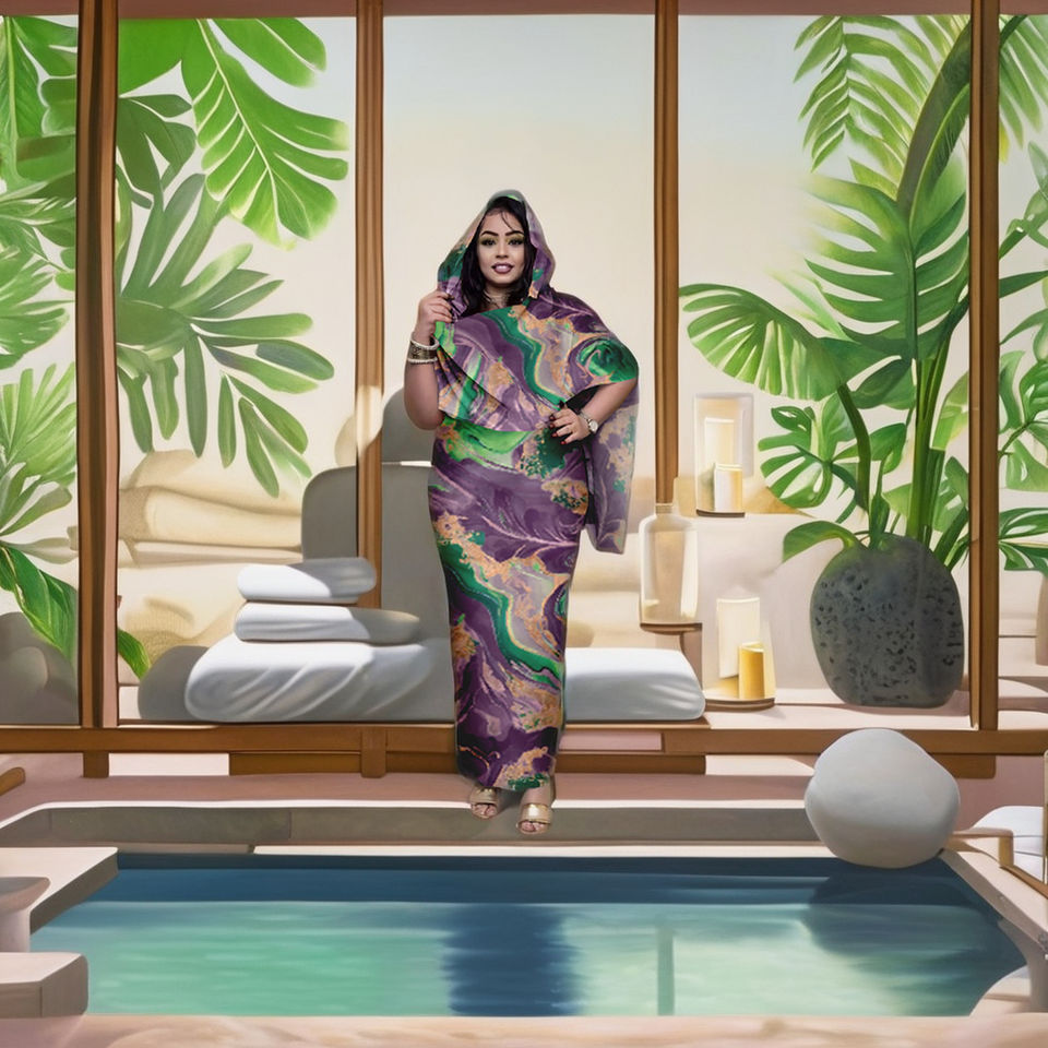 WEIWEI Robe Toub Sexy Haute Qualité Style Imprimé Floral pour Femmes Soudanaises Africaines du Moyen-Orient